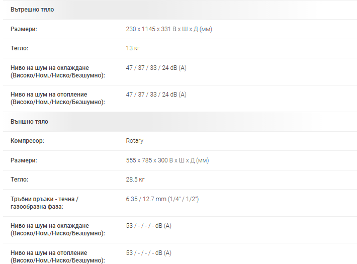 | Енергиен клас (охлаждане / отопление — умерена зона) | A+++ / A++ |