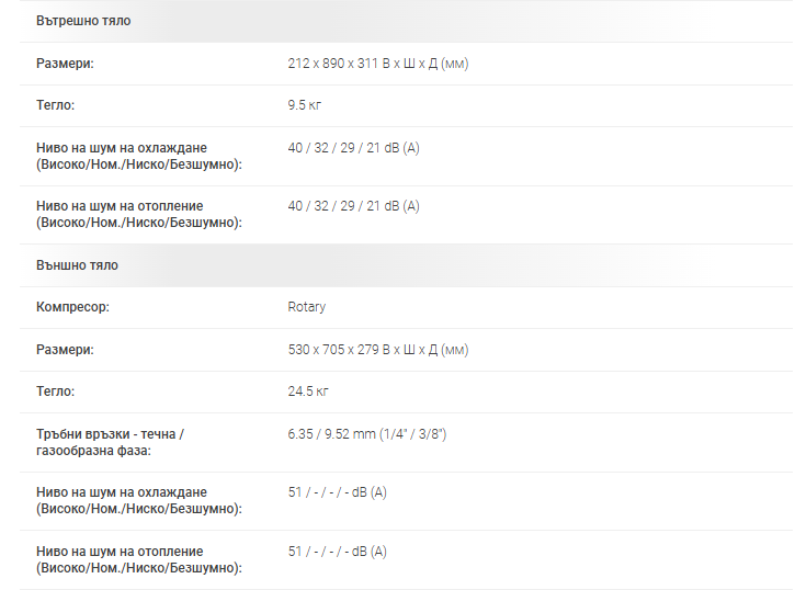 | Годишен разход на ел. енергия (Охлаждане / Отопление) | 140 / 805 kWh |