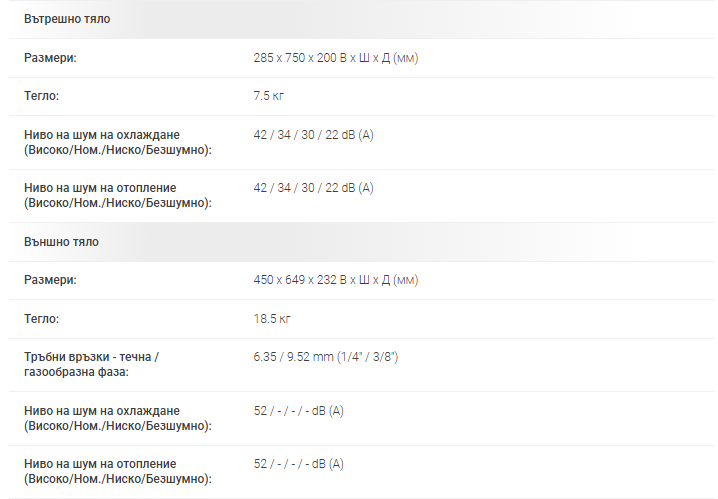 | Годишен разход на електроенергия (Охлаждане / Отопление) | 192 / 840 kWh |