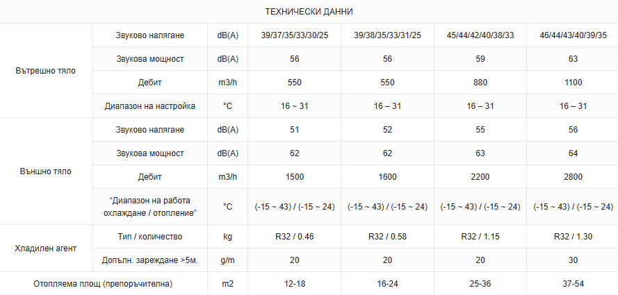 | Охлаждане – мощност (мин.–макс.) | 6500 W (1600 – 7200) |