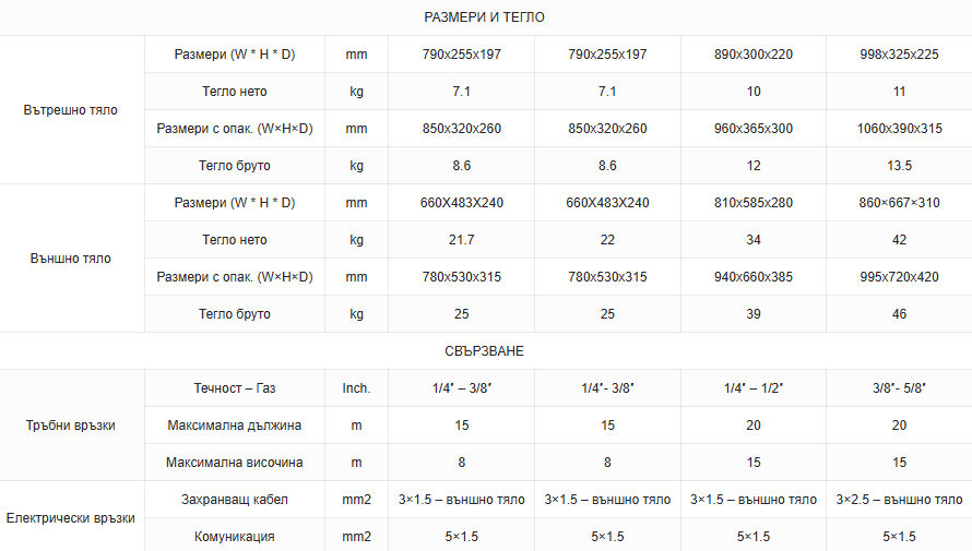 | Захранване | 220–240V, 1 Phase, 50Hz (Външно тяло) |