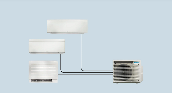 - Към 1 външно тяло тип "мулти" могат да се свържат до 2 вътрешни тела; всички вътрешни тела се управляват поотделно и няма нужда да се монтират в същата стая или по същото време