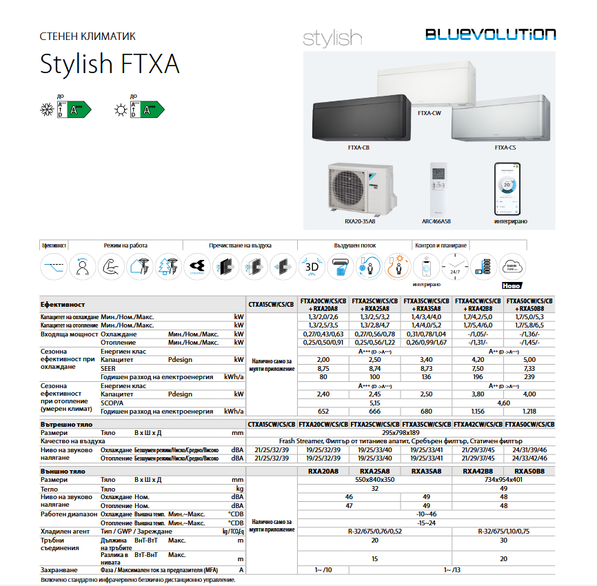 Инверторен климатик Daikin FTXA35CB/RXA35A8 STYLISH, Клас А+++