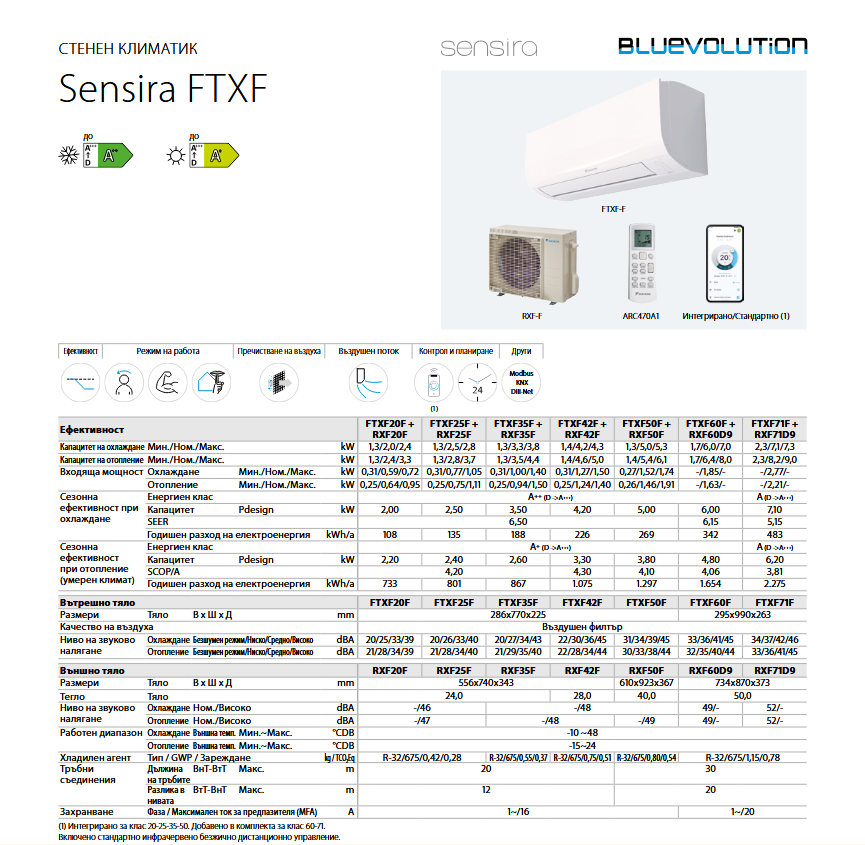 Инверторен климатик Daikin FTXF25E/RXF25E SENSIRA