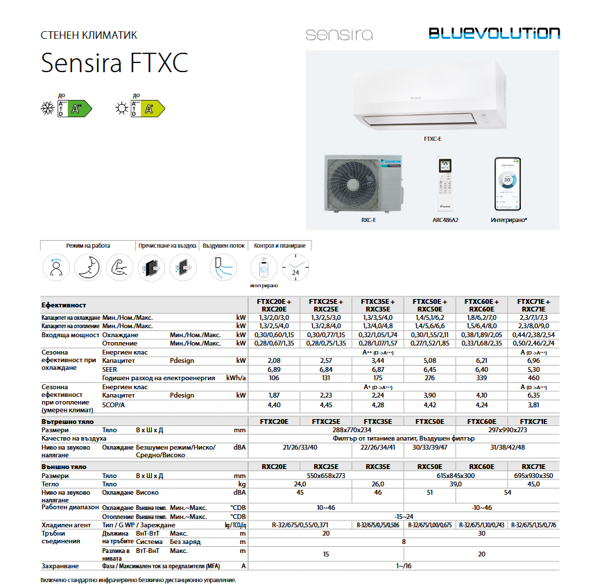 Климатик Daikin Сенсира FTXC25E /RXC25E Sensira