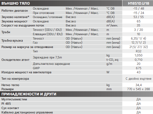 Инверторен климатик H18S1D.NS1/U18 Deluxe 18000 BTU