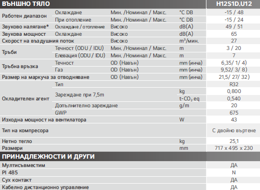 | Разпознаване на ниско ниво на хладилен агент | Да |