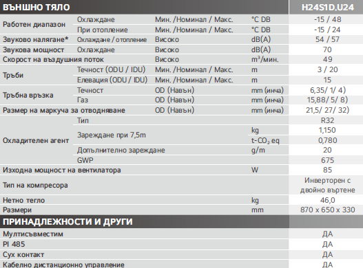 | Разпознаване на ниско ниво на хладилен агент | Да |