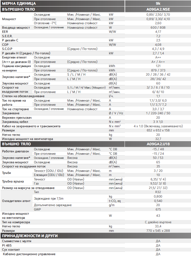 | Двоен инверторен компресор | Осигурява висока ефективност, стабилна работа и икономия на енергия |