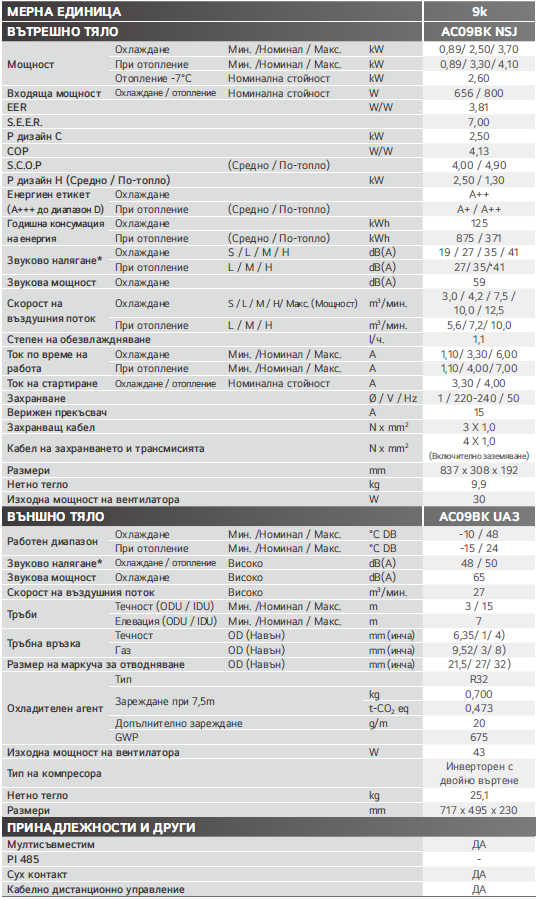 | Двоен инверторен компресор | Осигурява по-висока ефективност и по-ниска консумация на енергия |