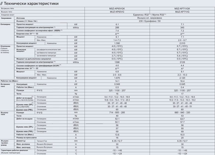 Климатик Mitsubishi Electric MSZ-AP71VGK / MUZ-AP71VG, 7,1 kW / 24 000 BTU