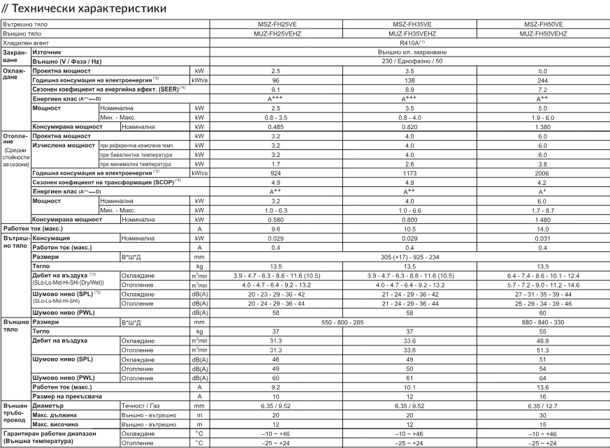 | Гарантиран раб. диапазон отопление, °C | -25 ~ +24 |