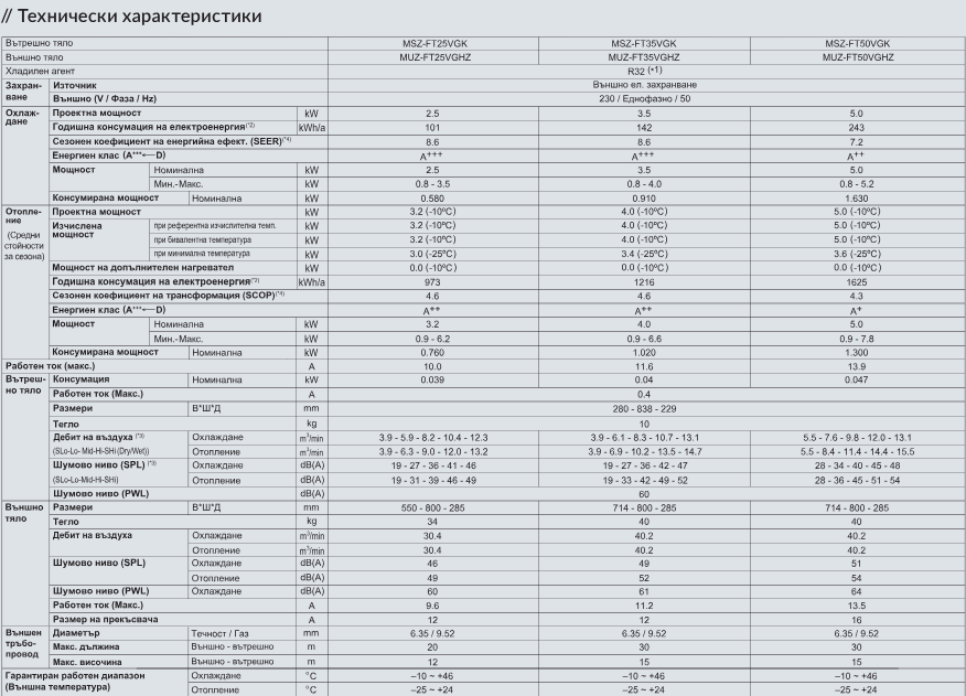 | Гарантиран раб. диапазон отопление, °C | -25 ~ +24 |