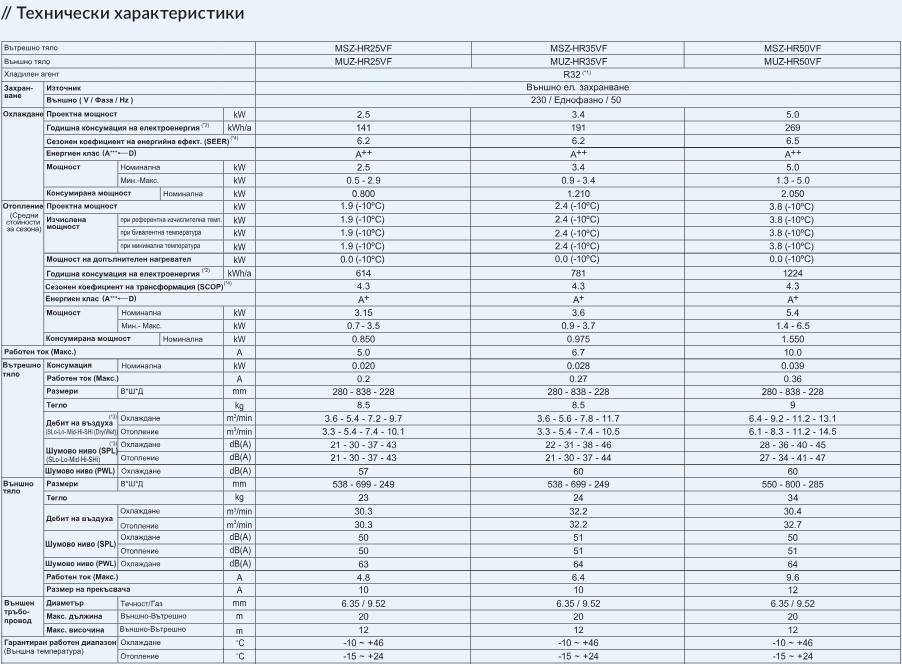 Климатик Mitsubishi Electric MSZ-HR25VF / MUZ-HR25VF, 2,5 kW / 9 000 BTU