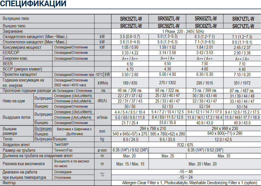 | Ниво на звукова мощност, външно (охлаждане/отопление) | 66 / 66 |